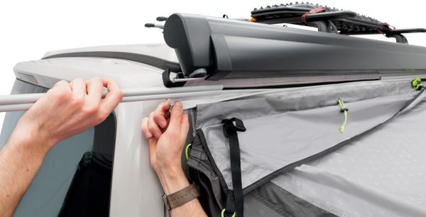 "With a roofattachment length of 270 cm, the set is suitable for a wide range of vehicles and ensures that your awning remains stable even in windy weather. The set consists of a 270 cm long textile-keder and three 90 cm long double keder-connection profiles, which enables versatile adaptation to different vehicle types."