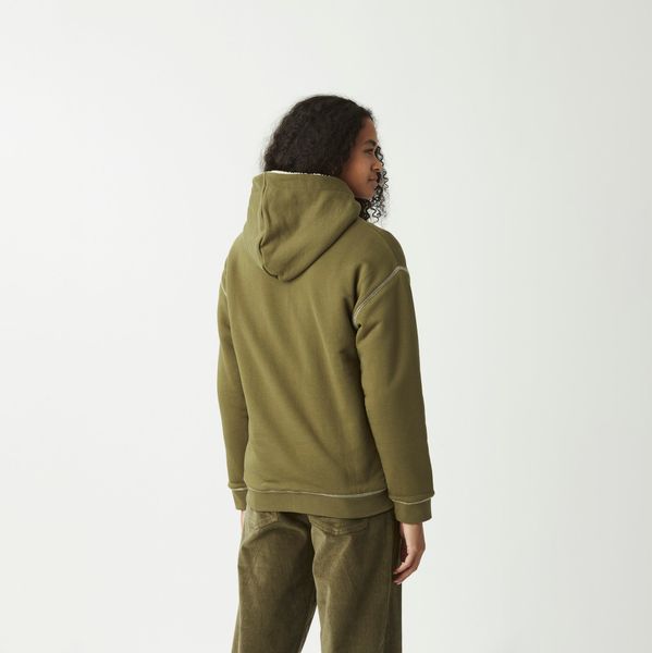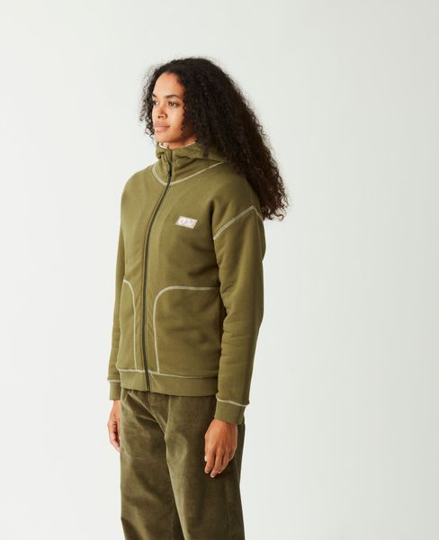 "The hoodie features hand pockets with inverted zippers under a flap and a front pocket with zipper, which is also concealed under a flap. The back pockets are fitted with press studs and offer additional space for your small everyday itemsu00e4nde. The YKK zipper on the front makes it easy to put on and take off and is another quality feature of this garment."