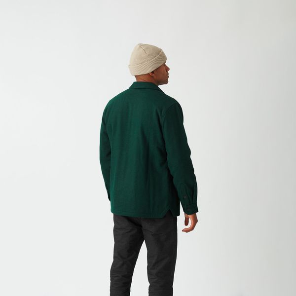 "Stylish men's wool shirt with practical details for everyday urban life and work."