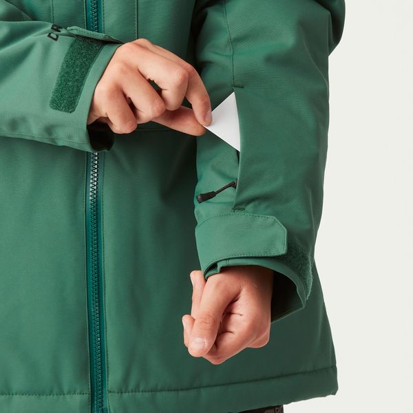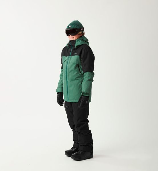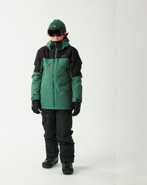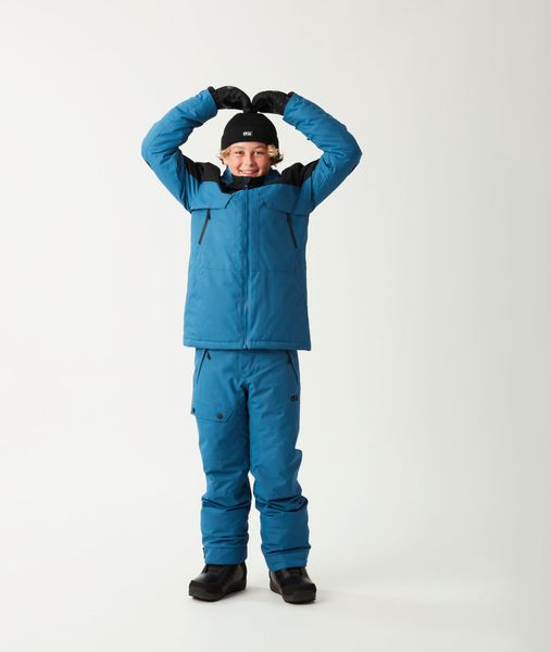 "Performance and warmth for young skiers and snowboarders. Introducing the COSSMO JKT: a winter jacket for youngsters that is tailored to the next generation of skiers and snowboarders. With a blend of 52% recycled polyester and 48% polyester, this jacket meets both the Global Recycled Standard and the Oeko-Texu00ae Standard 100. The insulation with Recycled Thermal STD technology is processed in different thicknesses on the body, in the sleeves and in the hood to optimize the thermal performance. The Dryplay 10K technology and Teflon Ecoeliteu2122 PFC-free DWRimpreu00e4gnation ensure the highest level of weather protection. All critical seams are taped for additional impermeability. With a regular fit, a YKKu00eae frontu00ezip, Lycrau00e cuffs and adjustable cuffs, the jacket is a symbiosis of functionalityu00e4t and comfortu00e4t. Hand pockets with zips and a chest pocket offer plenty of storage space. An ergonomic hood with adjustment, a fixed snow guard, special pockets for skis and an inner mesh pocket round off the features. The jacket also features a grow-with-me system that allows it to adapt to your growth. In short: The COSSMO JKT is characterized by sustainability, performance and flexibility, making it an excellent choice for young winter adventurers"
