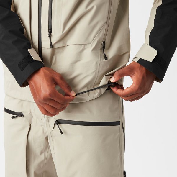 "Equipped with a windproof material, the Huron jacket offers additional protection from the elements. Practical details such as the side pockets with invisible zippers, adjustable cuffs with Velcro fasteners and a flexible neoprene design ensure maximum comfort. A fixed snow skirt ensures that no snow can penetrate, while waterproof ventilation zips under the arms provide fresh air when needed."