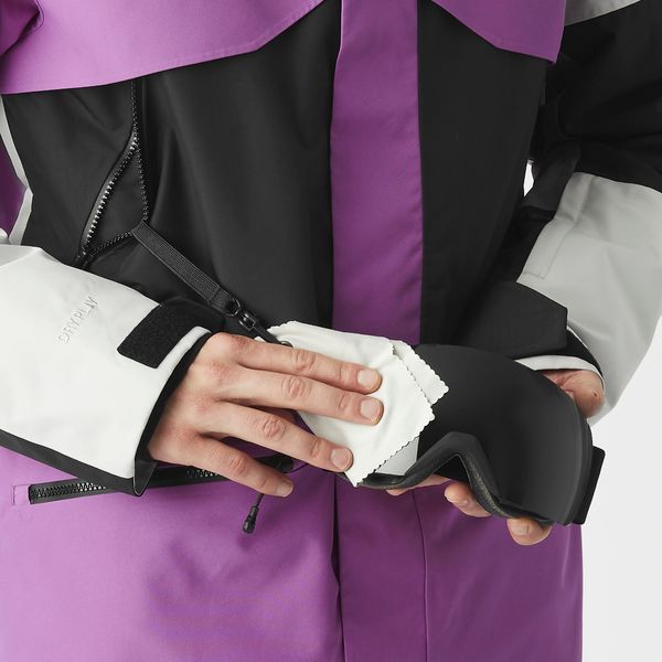 "The 180GR/M2 tricot lining ensures additional comfort, guaranteeing freedom of movement and practicality. The ergonomic hood with triple adjustment system reliably protects against changing weather conditions. Practical details such as the invisible side pockets, a chest pocket with a waterproof YKKu00ae-Reiu00dfastener and the ventilation openings under the arms make the jacket an indispensable companion for dynamic descents and strenuous ascents"