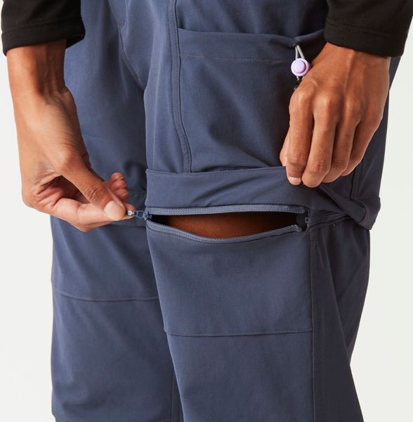 "Versatile 2-in-1 hiking trousers for women with a water-repellent DWR treatment and practical zip-off legs."