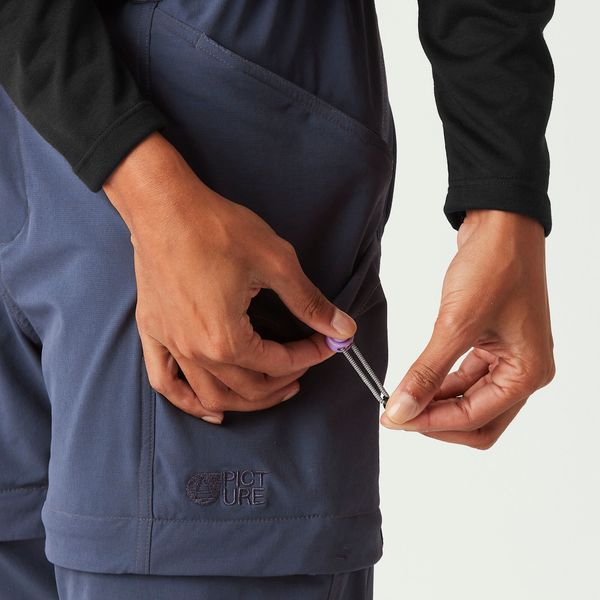 "The Outif W 2IN1 Stretch Pant from Picture is the ideal choice for women who love hiking and want maximum comfort and flexibility. These innovative 2-in-1 trousers can be transformed into shorts in no time at all thanks to their practical zipper function, allowing them to adapt perfectly to changing weather conditions and different levels of activity. The leg ends can be easily stowed away in the elasticated trouser pockets, making the trousers an indispensable companion for outdoor adventures."