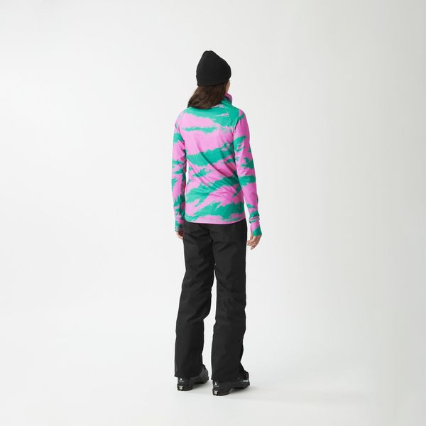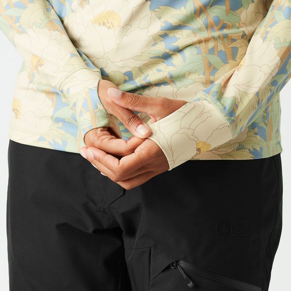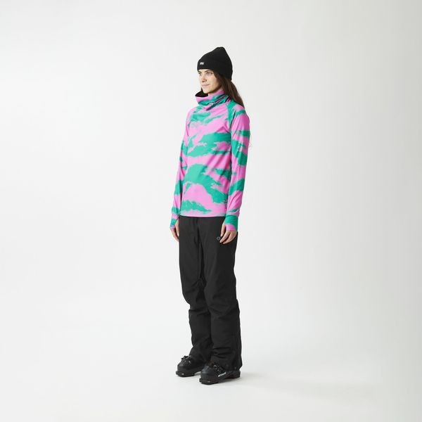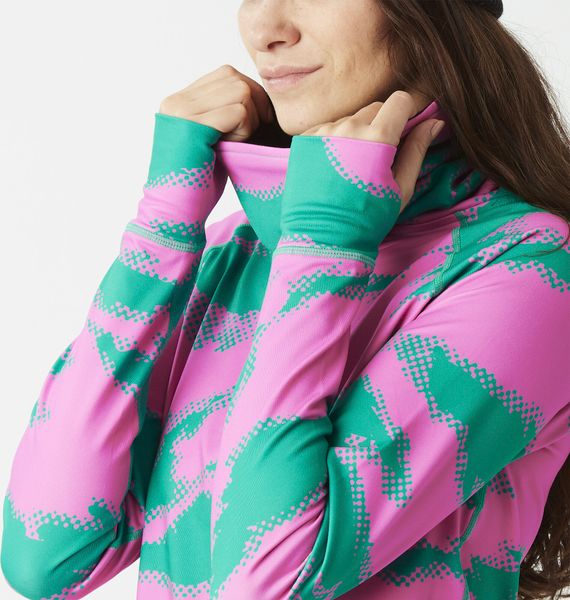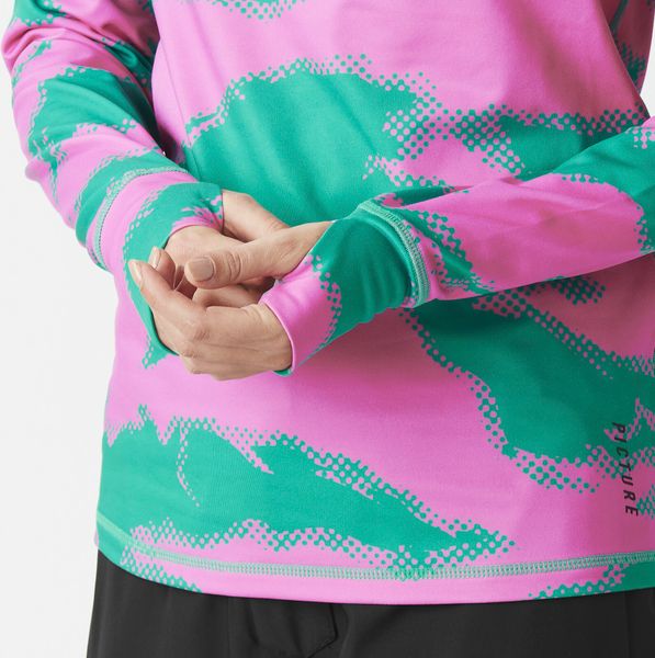 "Functional base layer made from soft and stretchy recycled polyester fabric."