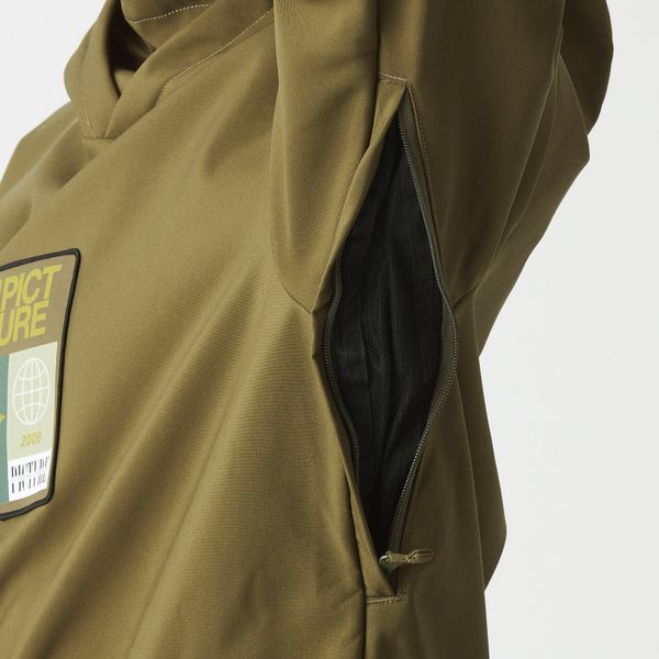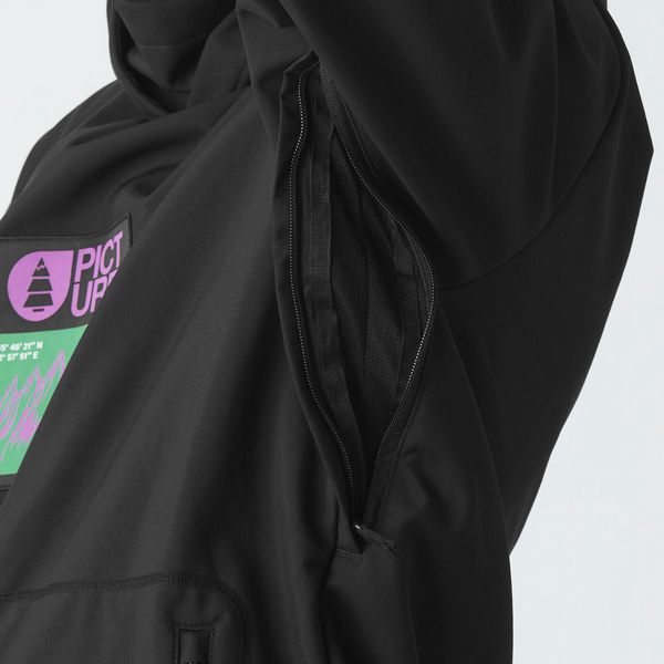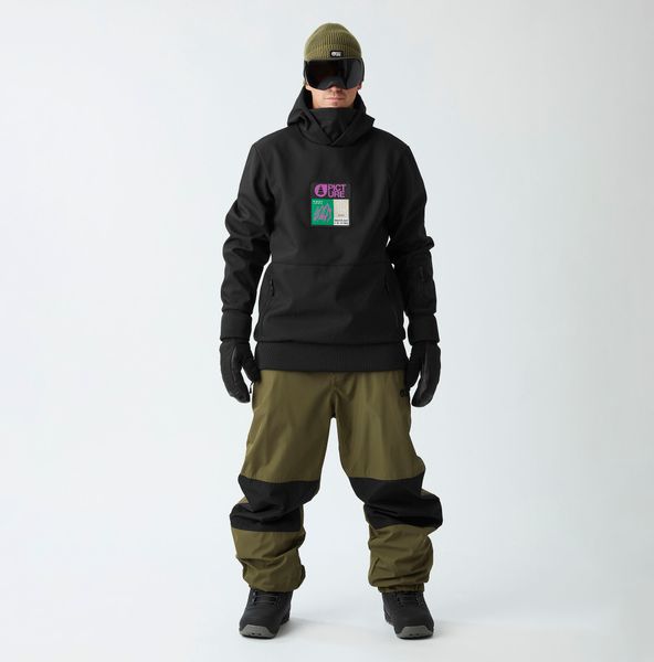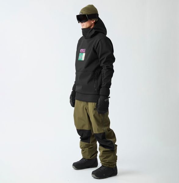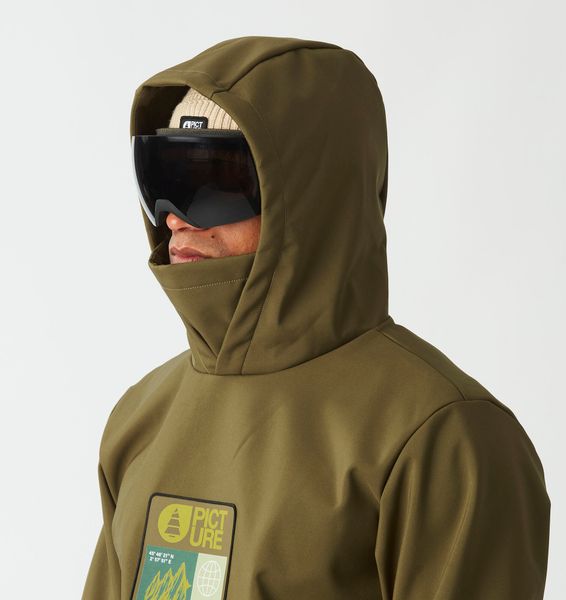 "The Parker Jacket is a Pictureclassic and is perfect for short trips and shredding in the snowpark. The three-layer, fleece-lined softshell is a technical sweatshirt with an urban look. Made from robust recycled polyester with a 5K/5K membrane for breathable moisture protection, optimized with a PFC-free, durable water-repellent finish. And when the sun is shining, you can open the zipper for efficient ventilation. The adjustable hood and high collar as well as the elasticated cuffs ensure greater comfort and a better fit when you're out in the park or on the side slopes."