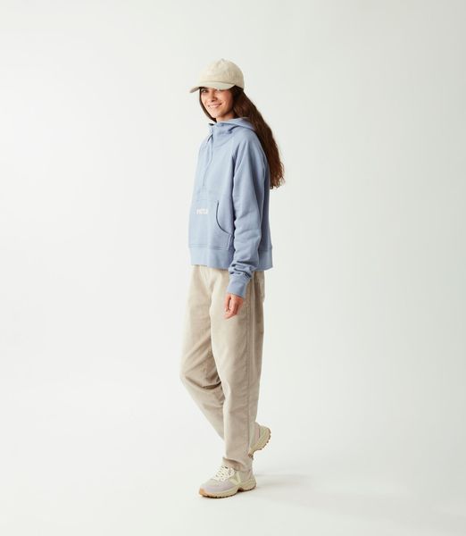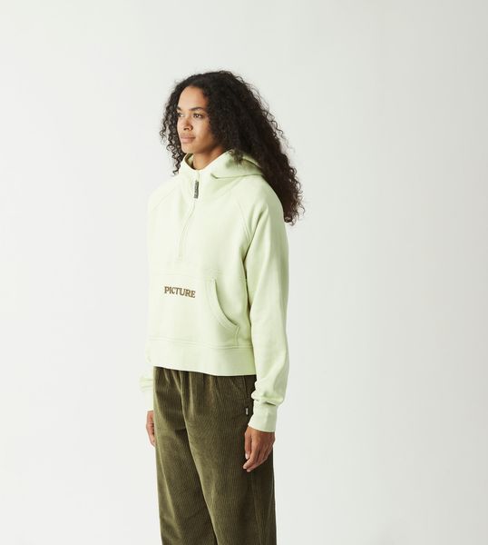 "The Quenda u0153 Zip Hoodie from Picture is the ideal companion for women who value style and comfort in everyday urban life. Made from high-quality cotton, this hoodie is not only comfortable to wear, but also a sustainable choice for environmentally conscious shoppers. The hood provides additional protection on windy days and gives the hoodie a casual look."