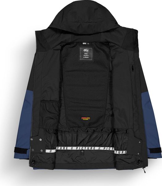 "The uncompromising combination of lightweight, waterproof breathabilityu00e4t and warm insulation. The 2layer Track Jacket is a Pictures iconic and incredibly multifunctional freeridejacket. It combines a u00d6ko design with circular polyester from textile waste and a 20K/20K membrane for unmatched breathable wet weather protection; optimized by a PFC-free, durable water repellent impregnation and waterproof zipper. Developed for versatility and warmth, the jacket features a ventilation zipper for rapid temperature regulation during intensive powder snow activities. The cuffs, hem and hood are adjustable for even better protection and a perfect fit; the insulation keeps you reliably warm all day long. The modern cut jacket made from textured fabric is equipped with pockets and all the functional details you need outdoors. The perfect combination of breathabilityu00e4t, waterproofness, minimal weight and warm insulation - without compromise. With our Track Jacket, you can enjoy the descent to the full without having to worry about anything else."
