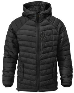 "Lightweight, windproof insulating jacket made from recycled material with adjustable hood and practical pockets."