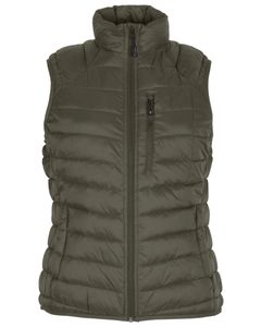 "Windproof, environmentally friendly women's vest with recycled lining and flexible fit, ideal for outdoor activities."