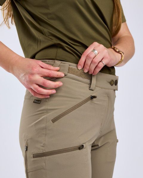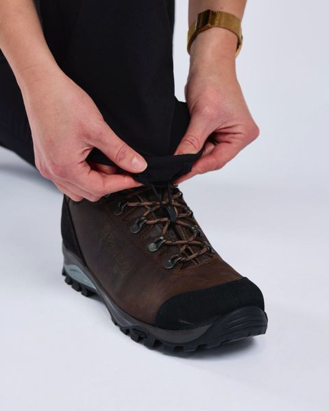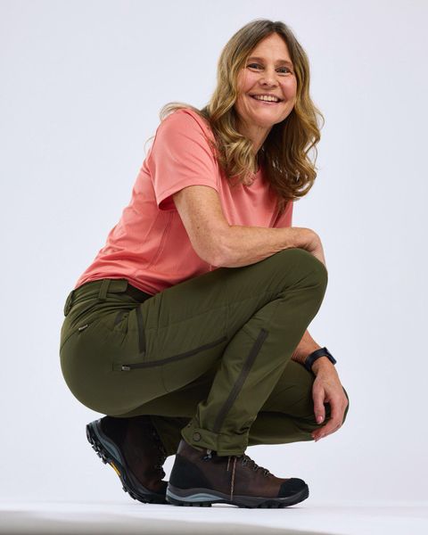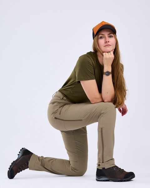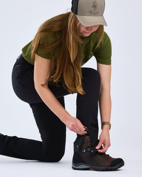"The leg straps, which allow quick access to the boots, and the buttons for adjusting the leg openings are particularly practical. The integrated boot hook ensures that the pants stay securely in place even during dynamic movements. The adjustable waistband with Velcro fasteners eliminates the need for an additional belt and ensures an optimum fit. A Pack-Away pocket makes storage easier when the pants are not in use. These elasticated pants are not only functional but also stylish, making them the ideal companion for any outdooradventurer."