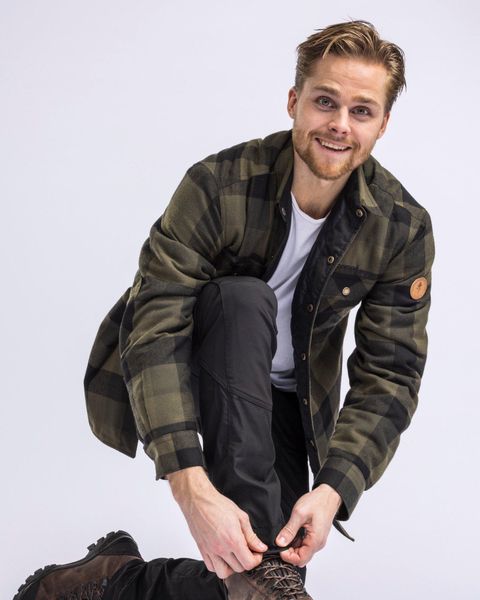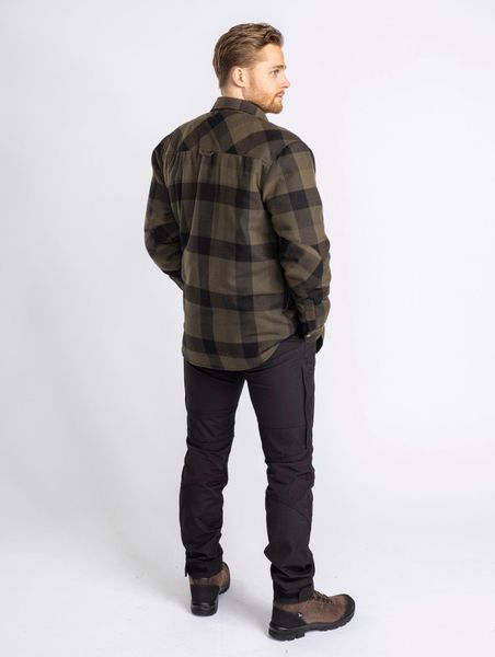 "Stylish and warm shirt with a wood filler look, ideal for hikes, made from a soft wool blend with practical pockets."
