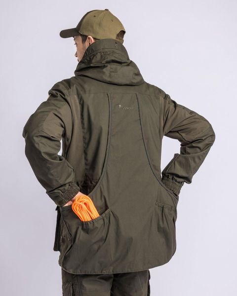 "The well thought-out design includes numerous practical pockets, including a spacious back pocket with space for up to 11 dummies u00e0 500 grams and two compartments for water bottlesu00e0. This jacket is not only functional, but also easy to clean, which makes it ideal for storing dog treats and other accessories. Reflective details also ensure increased visibility in low light conditions"