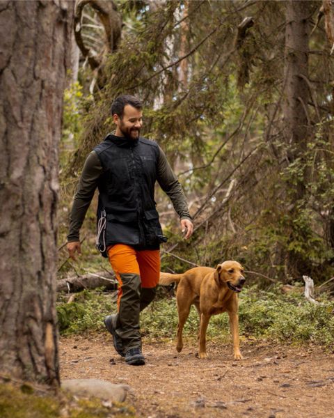 "Perfect vest for outdoor adventures with dogs, windproof, water-repellent, with practical pockets and reflective details."