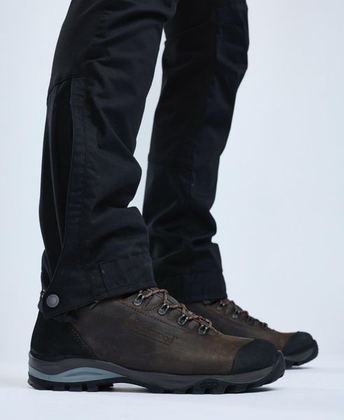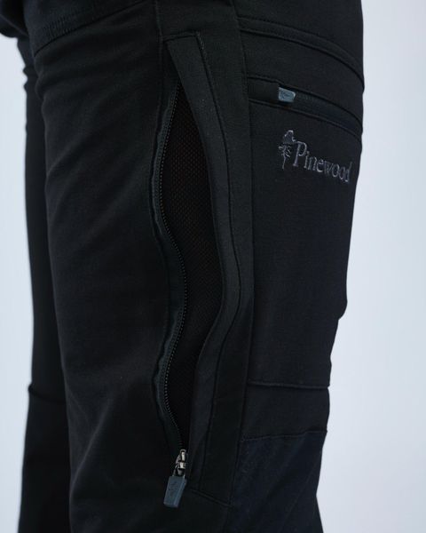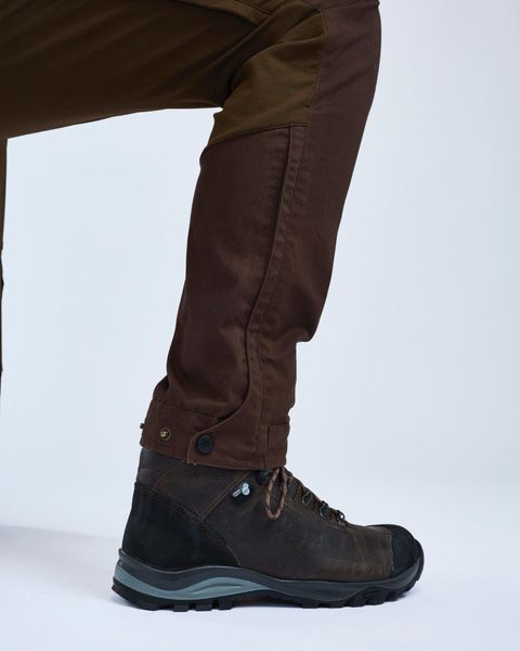 "Particularly noteworthy are the ventilation flaps on the thighs, which ensure pleasant air circulation when required and thus optimize the wearing comfort. The adjustable leg cuffs with three buttons and zipper as well as the practical shoe hooks offer additional comfort and flexibility. The elasticated waistband ensures that the trousers sit securely even during intensive activities. Equipped with four zippered pockets, the Finnveden Hybrid Trouser offers enough space for your most important items"