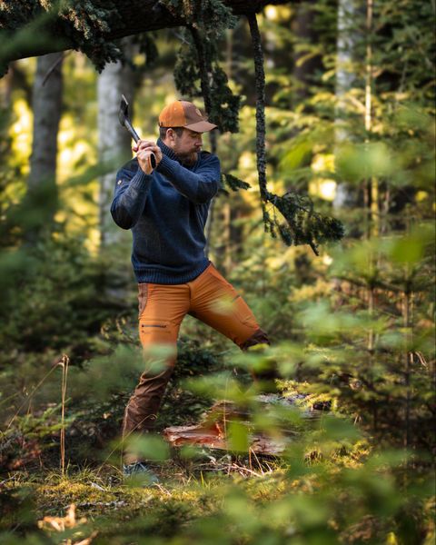 "The Finnveden Hybrid Trouser from Pinewood is the perfect choice for anyone who wants maximum comfort and functionality when hiking. These hybrid trousers combine innovative design with practical features and offer unrestricted freedom of movement thanks to the 4wegestretch material. The ergonomic cut with pre-shaped knee and seat sections ensures an excellent fit that adapts to every movement. The waxed finish not only gives the trousers added durability, but also water-repellent properties that protect you from unexpected rain showers."