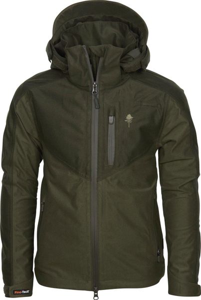 "The faux leather Pinewood logo on the sleeve adds a stylish accent that makes the jacket a real eye-catcher. Combined with the Furudal/Retriever trousers 6771, the result is a complete hunting set that is not only functional but also fashionable. With a breathability of 30,000 g/mu00b2/24h, the body climate remains pleasantly balanced, even during intensive activities."