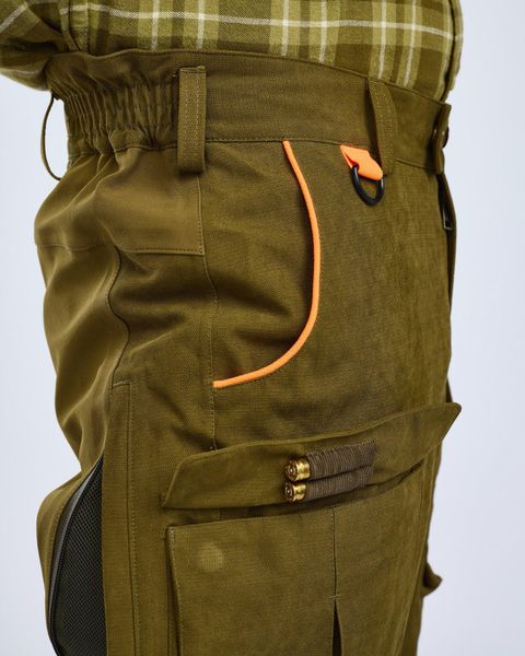 "A D-ring at the waist offers additional attachment options for useful accessories such as a knife, leash or carabiner. The elasticated waistband, which is cut higher at the back, ensures additional comfort and a secure fit. These hunting trousers are suitable for both summer and winter use, especially in combination with insulating layers, and thus adapt to the requirements of different types of hunting."