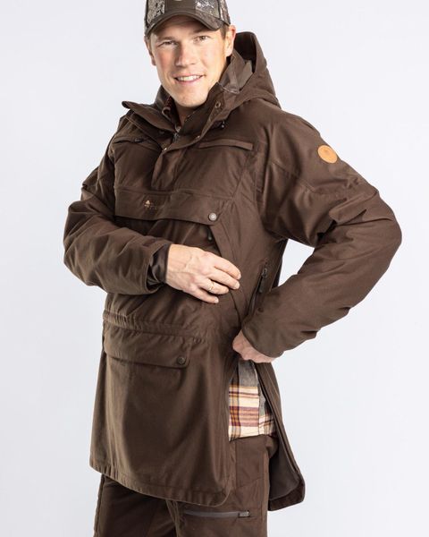 "The Furudal Hunters 2L Smock also impresses with its high breathability of 30,000 g/m2/24h and a regular fit cut that guarantees unrestricted freedom of movement. The discreet Pinewood logo made of synthetic leather gives the anorak an elegant touch. Whether in rain, wind or cold, this anorak is your reliable companion for demanding outdooradventures."