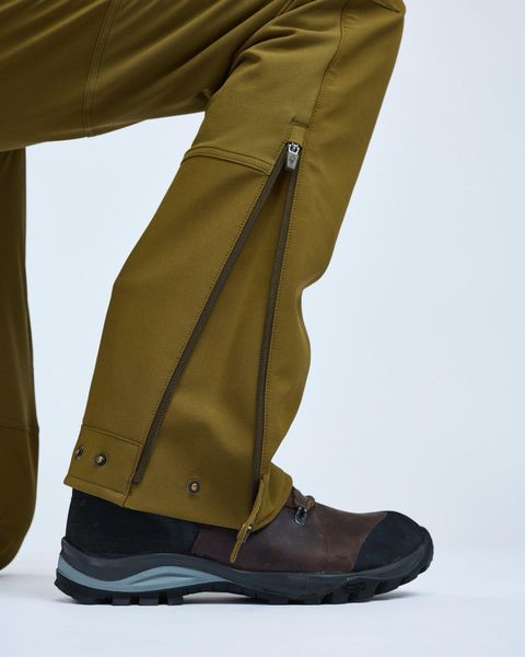 "The trousers are made from water-repellent stretch material and finished with an environmentally friendly, PFC-free impregnation. Practical details such as adjustable leg cuffs with zippers and press studs make it easier to put on boots. In addition, zipperedinsert pockets and leg pockets with flaps provide sufficient space for important items. The regular cut and adjustable Velcro fasteners at the waist eliminate the need for a belt and ensure a comfortable fit."