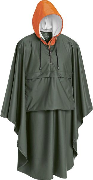 "The front cover is particularly practical, making it possible to protect sensitive equipment such as a riflescope or binoculars from the wet. The poncho is available in two color variants: a plain green and a variant with a striking orange hood, which was specially developed for hunters to increase visibility in bad weather."