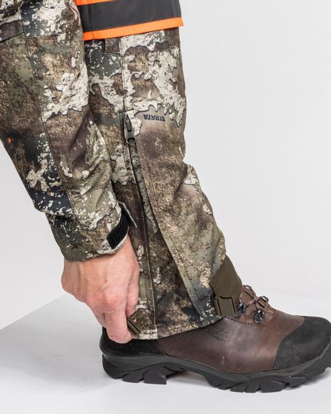 "The hunting trousers are equipped with the official True Timberu00u00ae Camou fabric, which is not only extremely durable but also visually appealingu00e4. For additional protection against the elements, the seams are glued and the BIONIC-FINISHu00ae ECO treatment ensures that the trousers remain waterand dirt-repellent. Ventilation zips on the sides allow for optimum air circulation, while the adjustable leg ends with zips, buckles and Velcro fasteners ensure an individual fit."