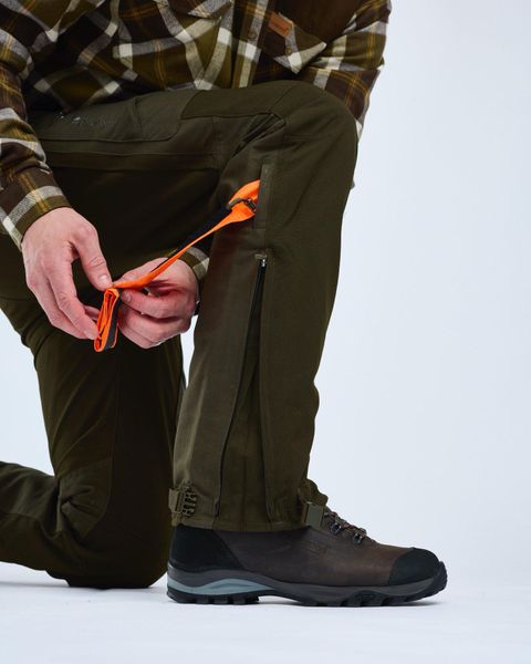 "The regular fit cut with stretch inserts offers excellent wearing comfort. The elastic, non-slip waistband and adjustable leg cuffs ensure that the trousers always fit perfectly, no matter how much you move. Practical details such as the large front pockets and the leg pockets with zippers, which also offer ammunition holders, make these trousers an indispensable companion on any hunt or outdooractivityu00e4t."