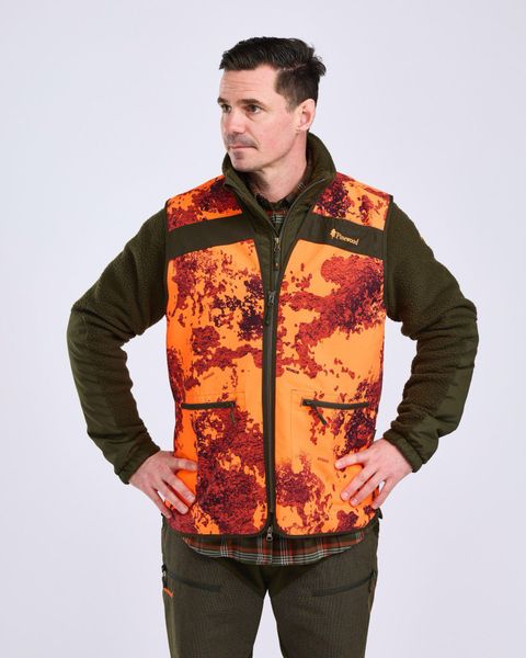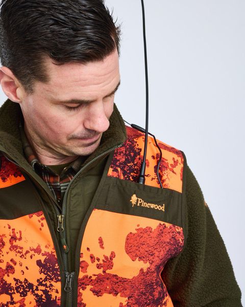 "The Hunters Camou Vest from Pinewood is the ideal choice for anyone who values functionality and comfort during outdoor activities. This unisex vest, made from high-quality wool, offers reliable protection from light rain thanks to its PFC-free, water-repellent coating while remaining breathable. The exclusive True Timber camouflage design not only ensures optimum visibility in the terrain, but also gives the vest a striking look."