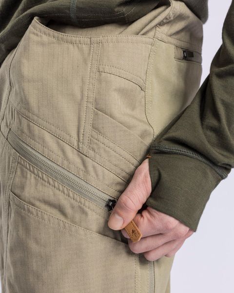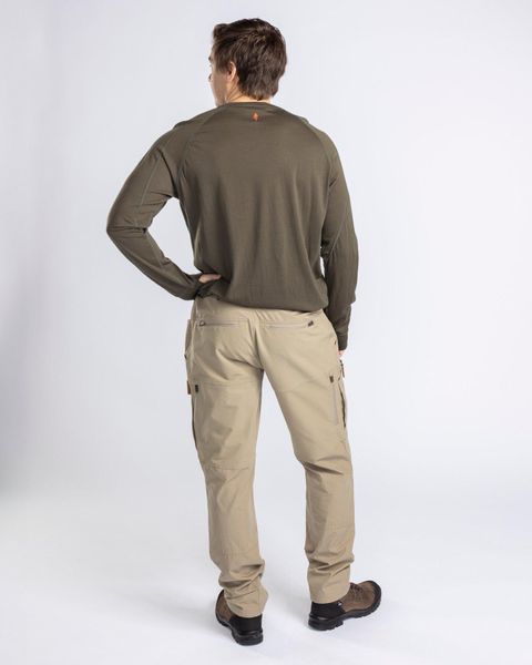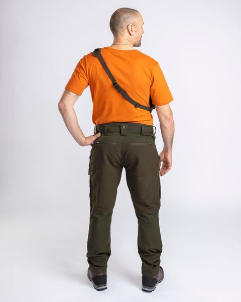 "Another highlight of the trousers is their ecological impregnation, which ensures water-repellent properties, while the ventilation zips on the sides guarantee excellent breathability. The adjustable waist with Velcro fasteners eliminates the need for an additional belt and allows for an individual fit. The numerous pockets are also practical: slide-in pockets, back pockets, zippered pockets on the legs and a special knife pocket offer enough space for all your utensils"
