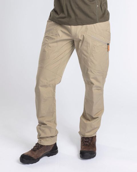 "Versatile and robust hiking trousers with numerous pockets and water-repellent material for demanding adventures."