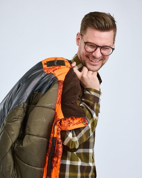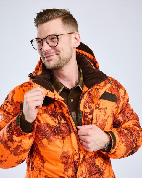 "The Smu00e5land Abisko Camou 2.0 jacket from Pinewood is the ideal choice for cold winter days and offers a perfect combination of functionalityu00e4t, comfort and style. This windand waterproof hunting jacket is lined with the advanced Pinewood Ultra Body-Heat technology, which returns up to 25% of body heat with its silver reflective dots. This ensures excellent heat retention and makes the jacket extra warm, even in icy temperatures"