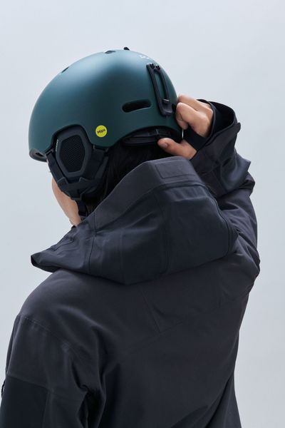 "The Fornix Mips is also equipped with the Mipsu00eae system, which offers additional protection in the event of rotational impacts. Flexible ear pads, which can be removed if required, offer additional comfort and warmth, while the goggle clip secures the ski goggles to the helmet. Whether with or without ear pads, the helmet always fits comfortably thanks to the flexible chin strap, inspired by cycling"
