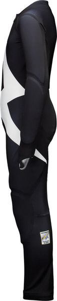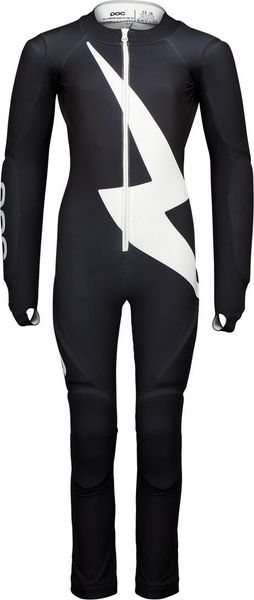"The Skin GS JR by POC is the ideal racing suit for young ski racers who value protection and performance. Made from a highly durable material, the suit minimizes damage thanks to Velcro fasteners on the shins and forearms. Integrated protectors on the arms, hips and legs offer additional protection and comfort, while the ergonomic fit is specially optimized for the racing position."