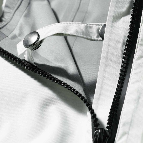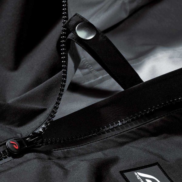 - ""Das ""wasserdichte, ""atmungsaktive, ""PFAS ""freie ""Ribstopmaterial, ""elastische ""und ""abriebfeste ""Einsätze, ""die ""verschweissten ""Nähte ""und ""die ""angeschnittene ""verstellbare ""helmtaugliche ""Kapuze ""gewährleisten ""maximalen ""Schutz ""auch ""bei ""extremen ""Wetterbedingungen. "" ""