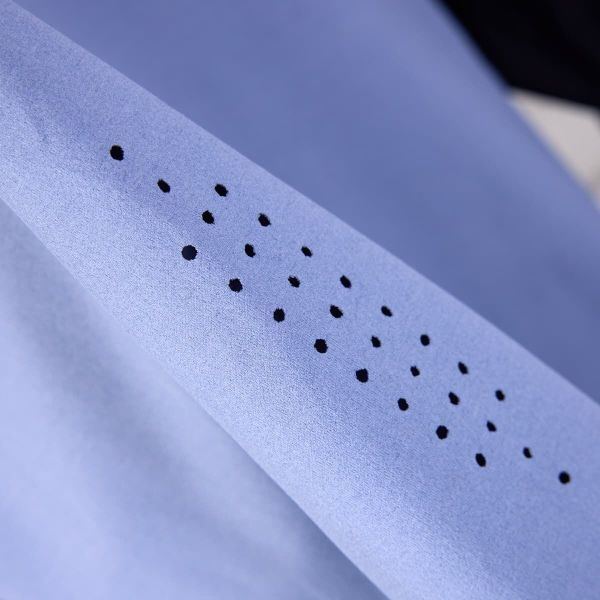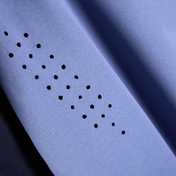 - "partially bonded round neckline, laser dots on the sides"