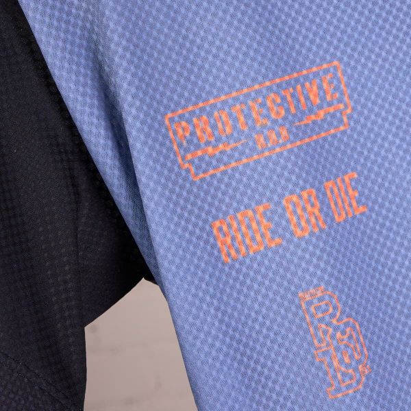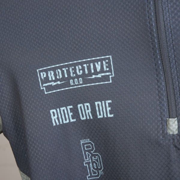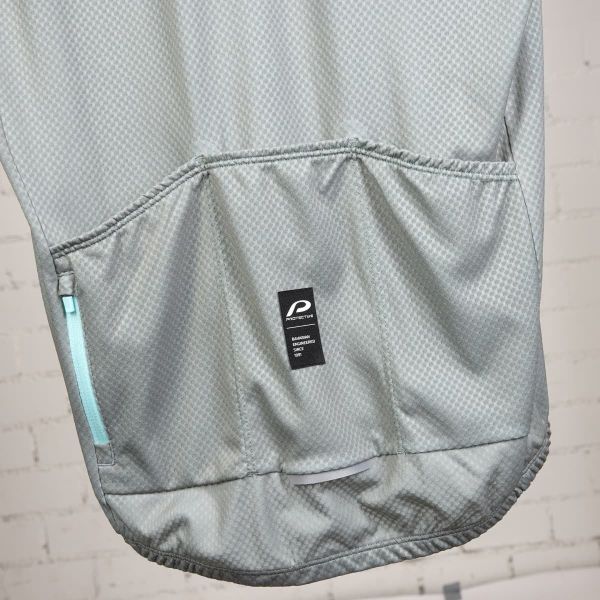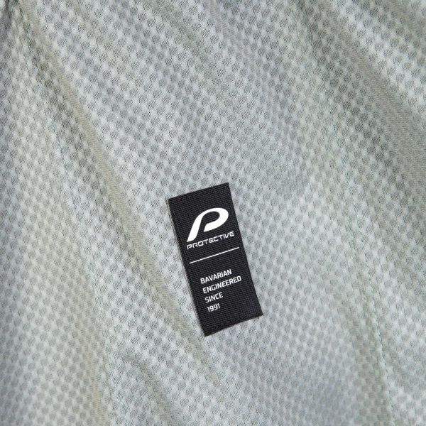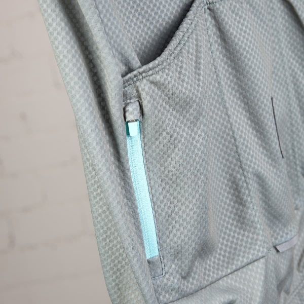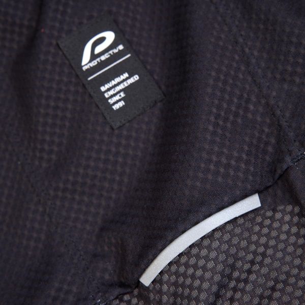 • "Stand-up collar, 3-part back pocket with additional side zipper pocket"