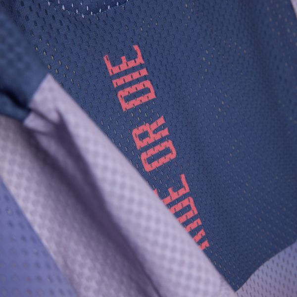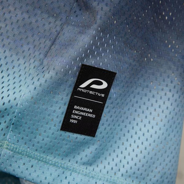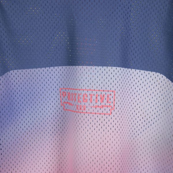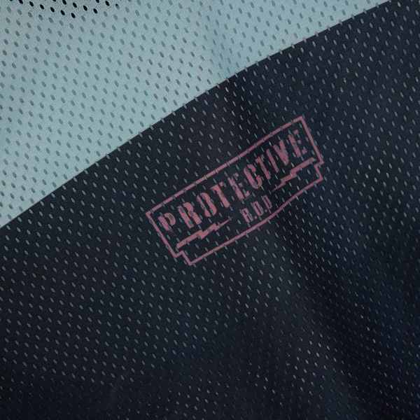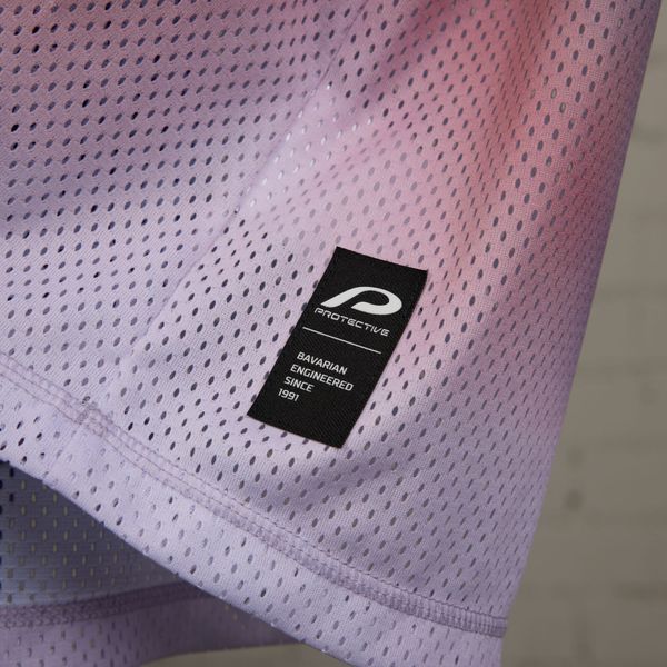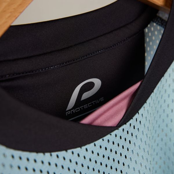 - "breathable mesh material, round neckline,"