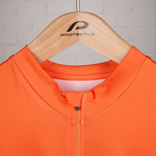 """The ""P-stone ""Dust ""jersey ""from ""Protective ""is ""the ""perfect ""companion ""for ""all ""cyclists ""and ""mountain ""bikers ""who ""value ""performance ""and ""sustainability. ""Made ""from ""recycled, ""highly ""elastic ""and ""breathable ""polyester ""material, ""it ""offers ""a ""lightweight ""and ""quick-drying ""feel, ""ideal ""for ""intensive ""tours ""in ""warm ""temperatures. ""The ""ergonomic ""fit ""with ""a ""siliconized ""hem ""ensures ""a ""perfect ""fit, ""while ""the ""full-length ""front ""zip ""allows ""for ""individual ""ventilation. ""The ""innovative ""aero ""collar ""reduces ""wind ""resistance ""and ""contributes ""to ""efficiency"