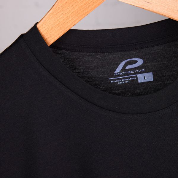 - "Round neckline, breast pocket"