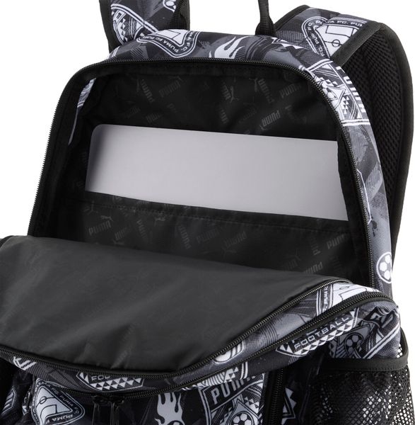 "The Academy AOP Backpack from Puma is the ideal companion for anyone who values style, functionality and sustainability. Made from at least 50% recycled materials, this backpack sets a clear example for environmentally conscious action. With a generous capacity of 29 liters, the backpack offers enough space for all your daily essentials and is therefore perfect for school, work or leisure activities"