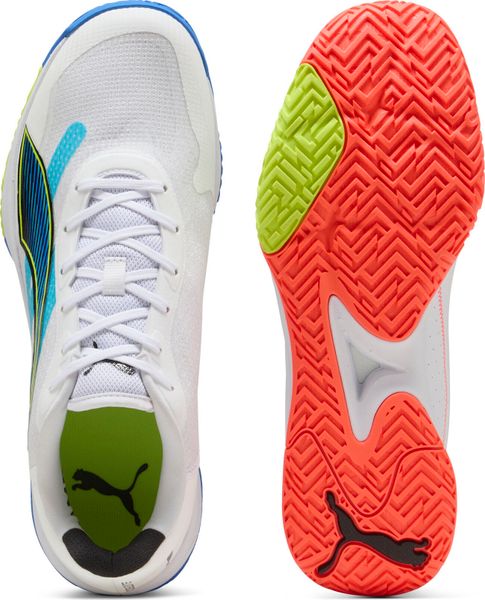 "Experience a new level of fitness and training with the Accelerate Turbo 4 Game On shoes from Puma. These shoes are not only environmentally friendly, as their upper is made from at least 20% recycled materials, but also offer superior performance characteristics. Thanks to PROFOAM technology, you can enjoy excellent cushioning and rebound with every step. The PUMAGRIP rubber outsole maximizes multidirectional traction and ensures a secure grip on all indoor surfaces."