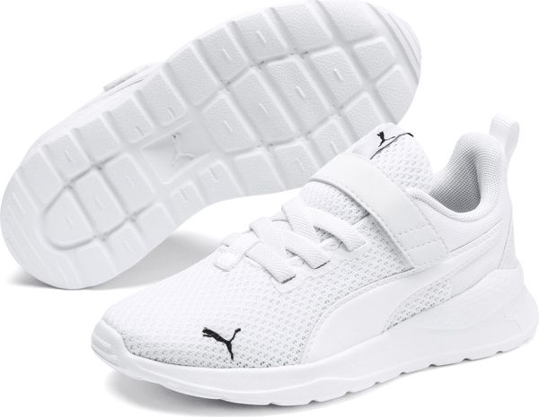 "The Anzarun Lite AC+ PS sneakers from Puma are the perfect combination of style and functionality for active children aged 4 to 8. Thanks to the breathable textile and synthetic upper, these elegant shoes not only offer a clean look, but also optimum comfort. The cushioned EVA midsole provides excellent cushioning with every step, while the non-slip rubber and synthetic outsole ensures a secure grip."
