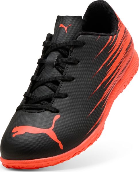 "The ATTACANTO II IT Jr from Puma is the ideal futsal shoe for young athletes looking for speed and precision. The soft synthetic upper is not only stylish with its dynamic graphics, but also functional as it is made from at least 20% recycled materials. This means that this shoe not only supports your athletic performance, but also the environment."