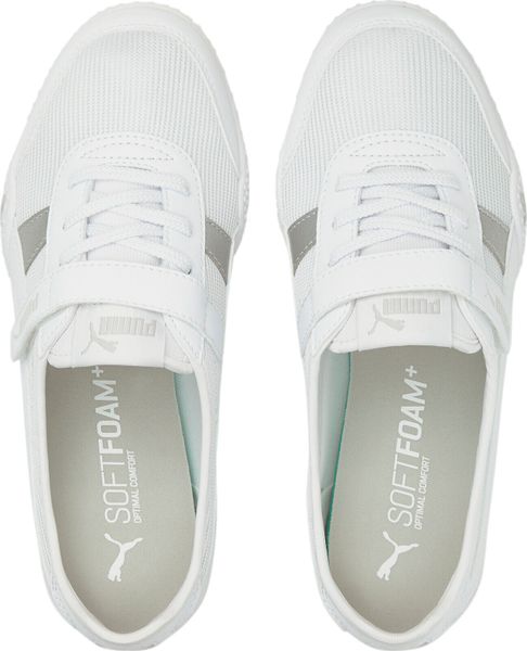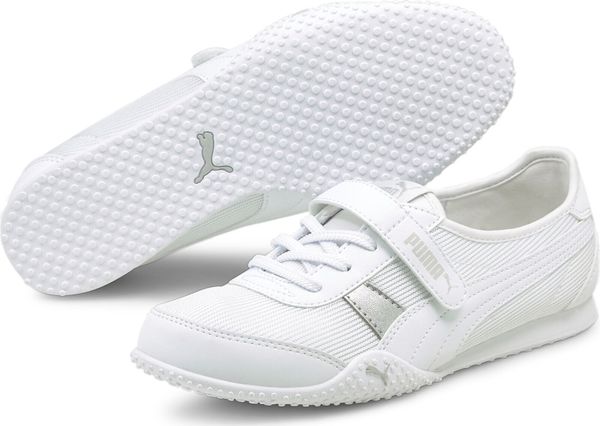 "Thanks to CMEVA technology, a compression-molded EVA from Puma, the Bella V sneakers offer maximum performance with minimum weight. The Puma No. 1 logo on the tongue, the No. 2 logo on the strap as well as the characteristic Puma Cat logo and the formstrip on the sides give the shoes a distinctive branding. These shoes are not only a fashion statement, but also functional and ready to conquer the urban jungle."