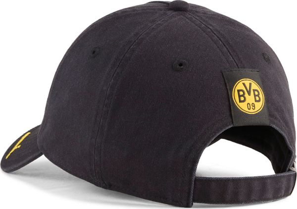 "The BVB Culture Cap from Puma is more than just a fashion accessory u2013 it is a statement for all Borussia Dortmund fans who want to show their passion for the club in their everyday lifeu2013. This stylish 5-panel cap combines the essence of football and fashion and reflects the ftblCulture collection, which stands for timeless style and club history. Made from at least 20% recycled cotton, it also sets an example for sustainability. The curved visor and adjustable fastening system ensure optimum comfort, while the official team branding underlines the connection to the club. Whether for your next visit to the stadium or in everyday life, this baseball cap will demonstrate your loyalty and unique style."