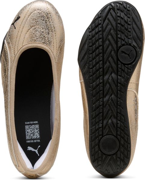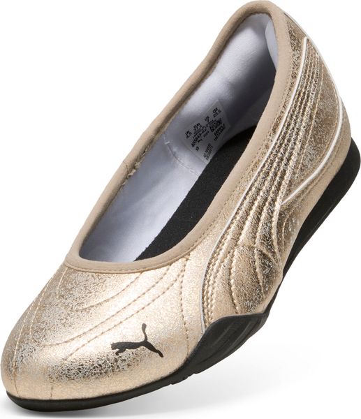 "With a regular width and a rounded toe area, these ballerinas ensure optimum comfort, while the flat heel and rubber outsole that wraps around the heel provide a secure grip. The PUMA branding rounds off the design and gives the shoe an unmistakable look. Part of the Metallic Whisper collection, this shoe shines with a striking formstrip in gold or silver and adds a touch of glamor to any outfit."