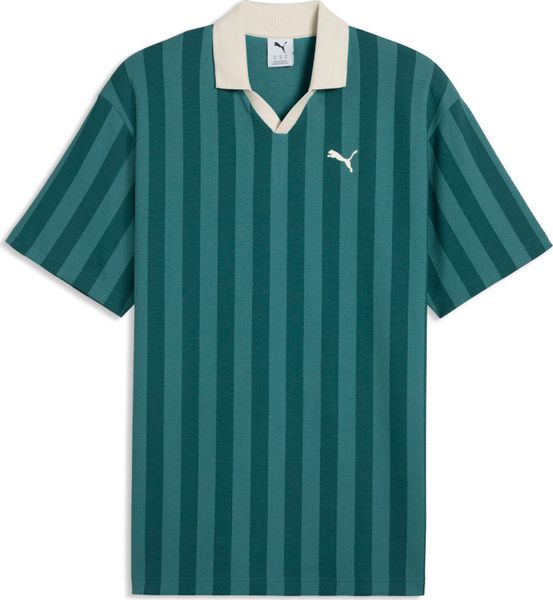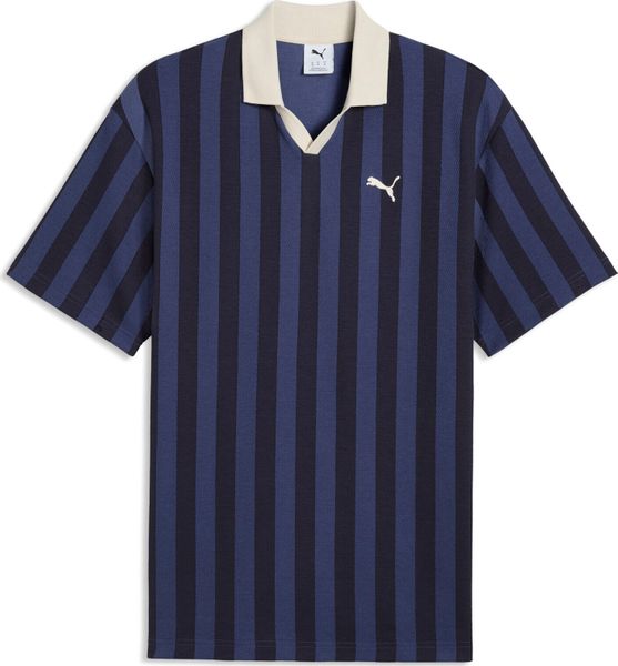"The Class Relaxed Pinnacle Polo from Puma combines mu00fchelo's classic heritage style with modern sportswear vibes to spice up your everyday life. This polo shirt is the perfect choice for men who value style and comfort, whether in their free time or in an urban work environment. Made from high-quality wool and mesh, it offers a relaxed fit that feels comfortable while exuding casual elegance."