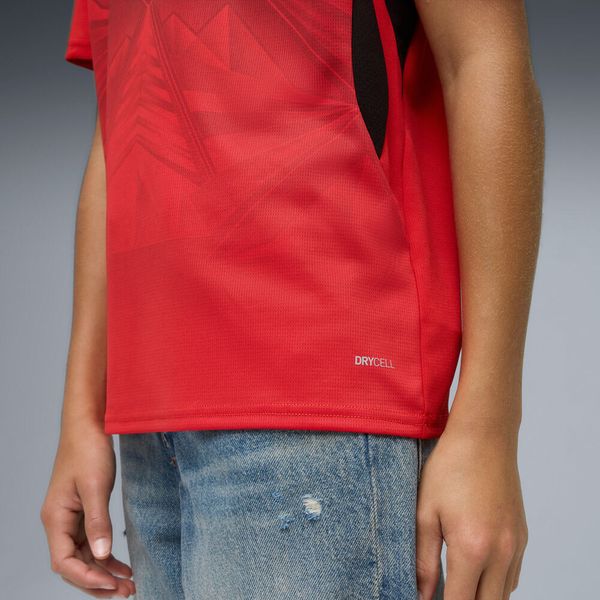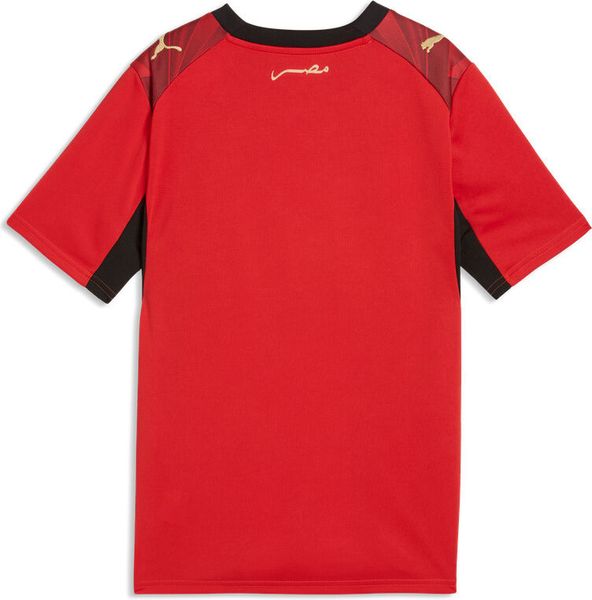 "With its doublefacejacquard main material, the jersey not only offers a high-quality look, but also excellent durability. The team and PUMA branding rounds off the design and makes it a must-have for every young football fan. Whether in the stadium or on the pitch, this jersey will make the hearts of young sports enthusiasts beat faster and show the passion for the Egyptian national team in every detail."