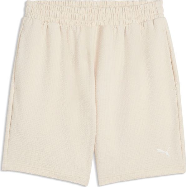 "The Essentials Elevated Material Shorts from Puma are the perfect addition to your urban wardrobe. These men's shorts combine comfort with a stylish design that is equally suitable for leisure and everyday wear. Made from high-quality seersucker material with at least 20% recycled content, these shorts are not only sustainable but also comfortable to wear. The ribbed waistband with drawstring ensures an individual fit, while the side pockets offer practical storage space"