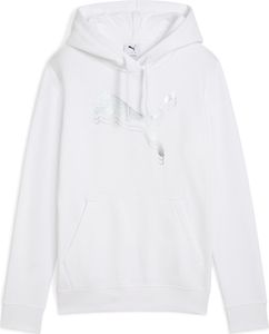 "The Essentials Metallic Hoodie FL from Puma takes your casual look to a new level. With its eye-catching metallic print in silver or gold, it is guaranteed to turn heads. The adjustable hood with drawstring and the soft fleece material ensure a comfortable feel, while the ribbed cuffs and hem guarantee a perfect fit. The hoodie is cut in a regular fit and offers optimum comfort thanks to its regular length."